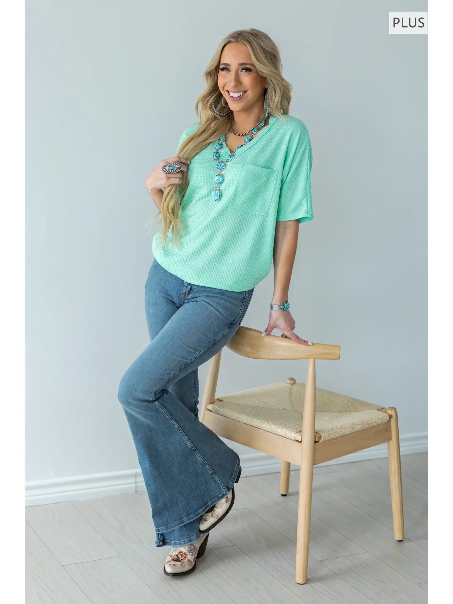 Curvy Two Tone Waffle Top (3) Colors