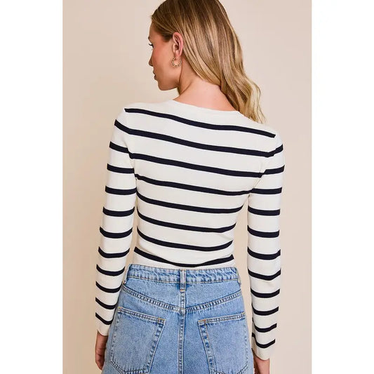 Adrian Round Neck Long Sleeve Stripe Knit Bodysuit